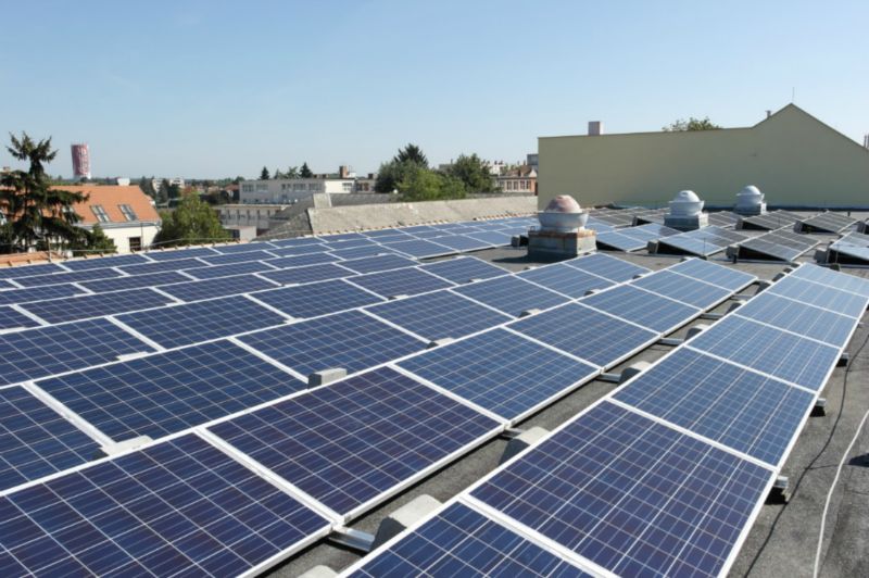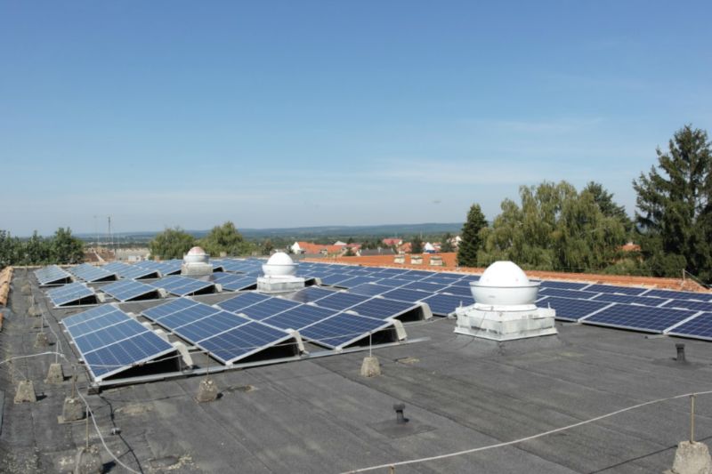 31,5 kWp csúcsteljesítményű napelemes HMKE rendszer. 126 db Winaico WST-250P6 típusú polikristályos napelem lapos tetőre telepítve és 3 db KACO Powador 10.0 TL3 típusú hálózatra visszatápláló háromfázisú inverter.
