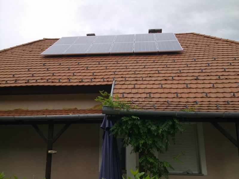 3 kWp csúcsteljesítményű napelemes rendszer 12 db Yingli Solar polikristályos napelem modullal és 1 db KACO Powador 3002 egyfázisú inverterrel.