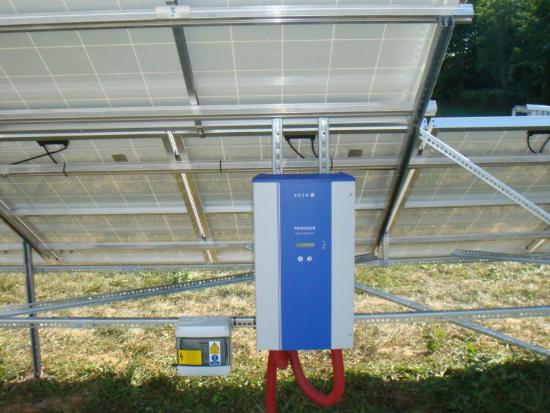 5,52 kWp teljesítményű napelemes rendszer telepítése a Spiller 2000 Kft. telephelyén, 24db Sharp ND-R230 polikristályos napelemmel, Kaco Powador 6002 egyfázisú inverterrel, egyedi tartószerkezettel.